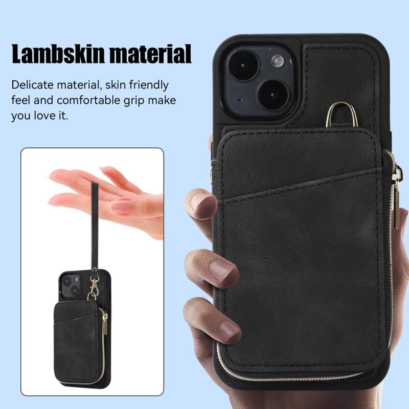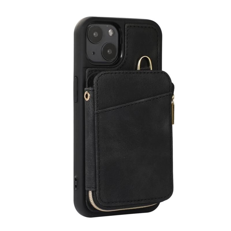 For iPhone 14 Plus Zipper Card Bag Back Cover Phone Case(Black)