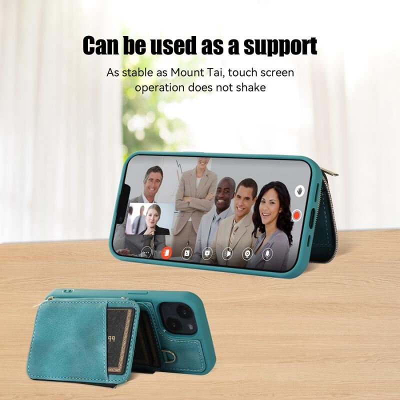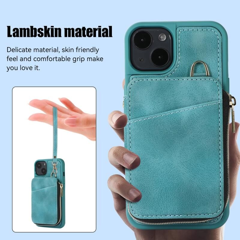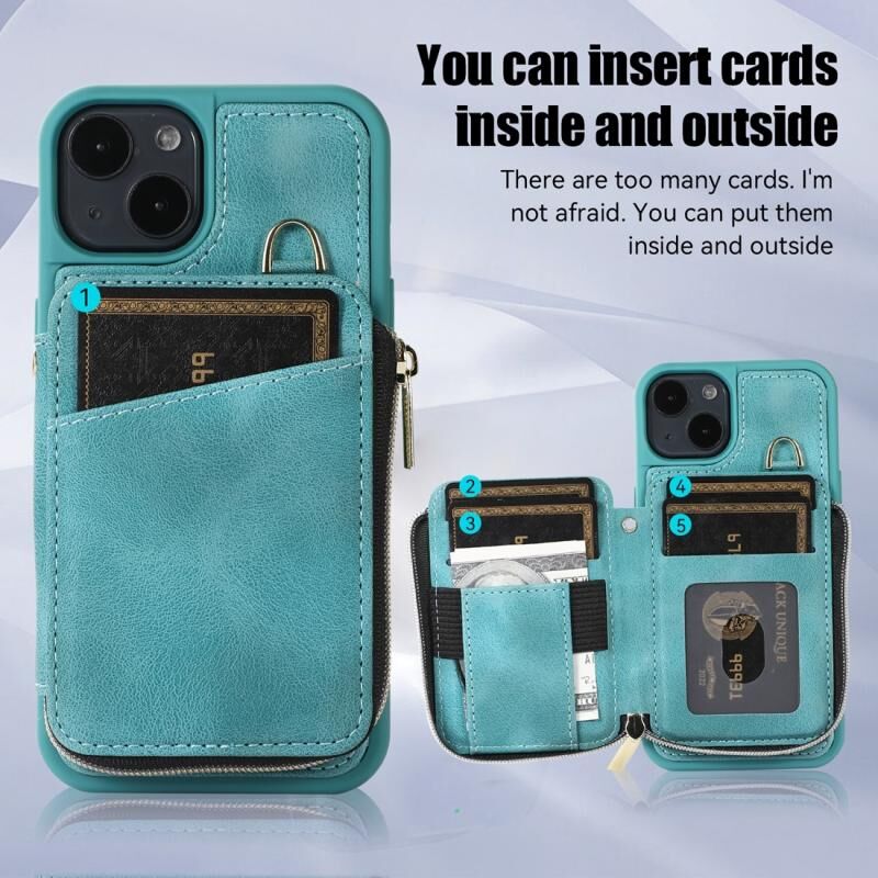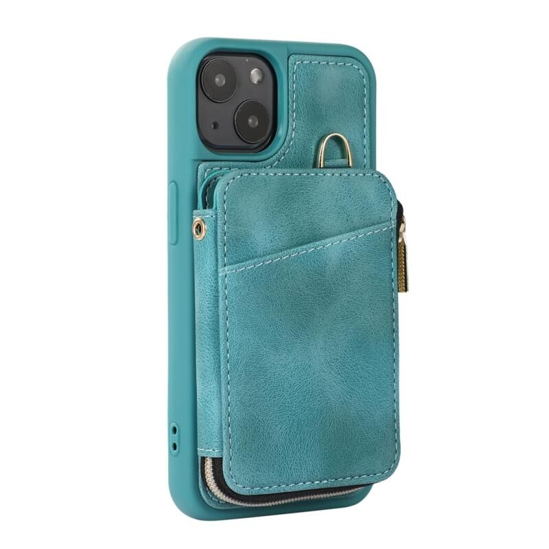 For iPhone 14 Plus Zipper Card Bag Back Cover Phone Case(Turquoise)