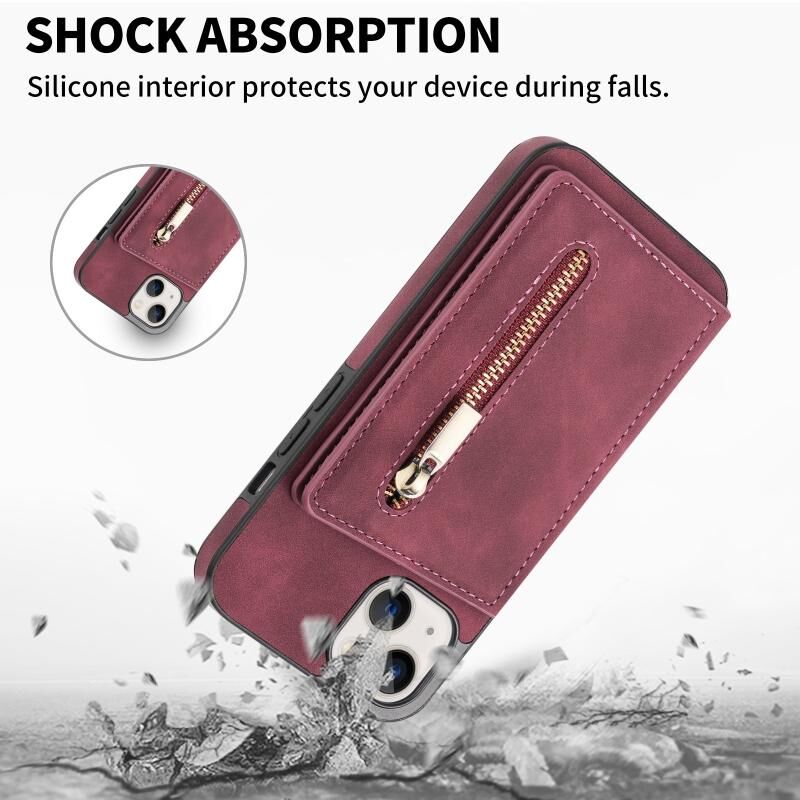Θήκη τηλεφώνου με φερμουάρ και θήκη καρτών για iPhone 14 Plus (Μαύρο)