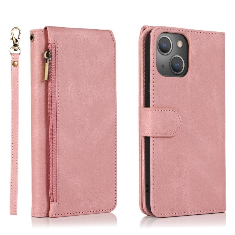 Θήκη για iPhone 14 Plus, Δερμάτινη Τσάντα με Φερμουάρ (Σκούρο Πράσινο)