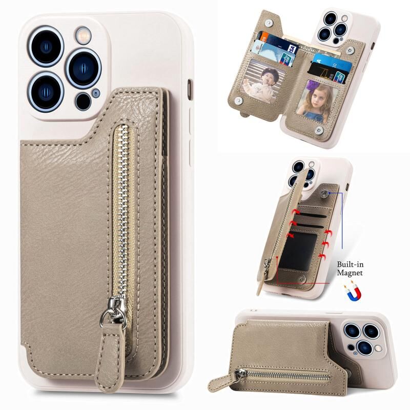 Θήκη για iPhone 14 Plus με φερμουάρ, δερμάτινη, αντικραδασμική (Μαύρο)