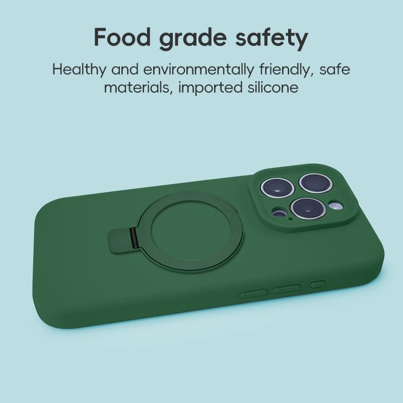 For iPhone 14 Precision Hole Liquid Silicone MagSafe Metal Ring Holder Phone Case(Green)