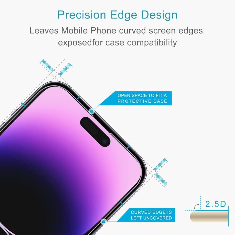 Για iPhone 14 Pro 2pcs 0.26mm 9H 2.5D μετριασμένο γυαλί οθόνης με 2pcs προστατευτικό φακού