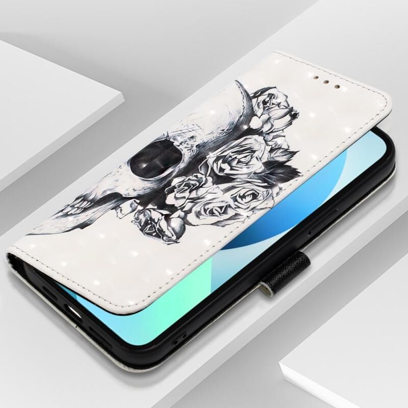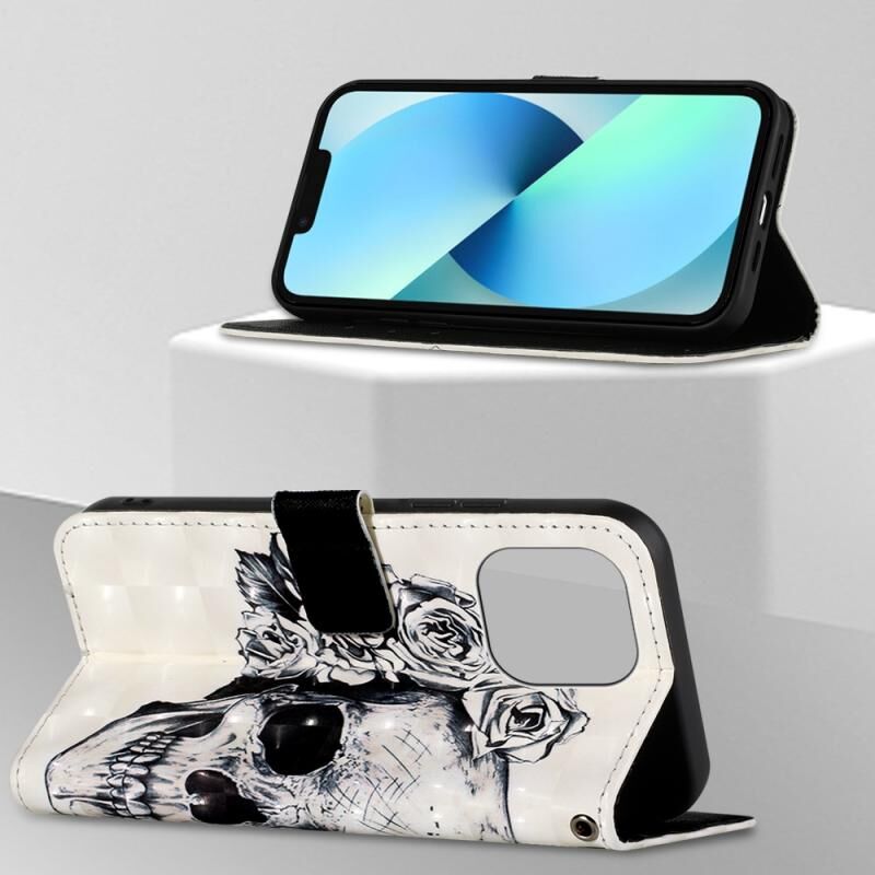 Θήκη τηλεφώνου δερμάτινη με οριζόντιο άνοιγμα και τρισδιάστατη ζωγραφική για iPhone 14 Pro (Κρανίο)
