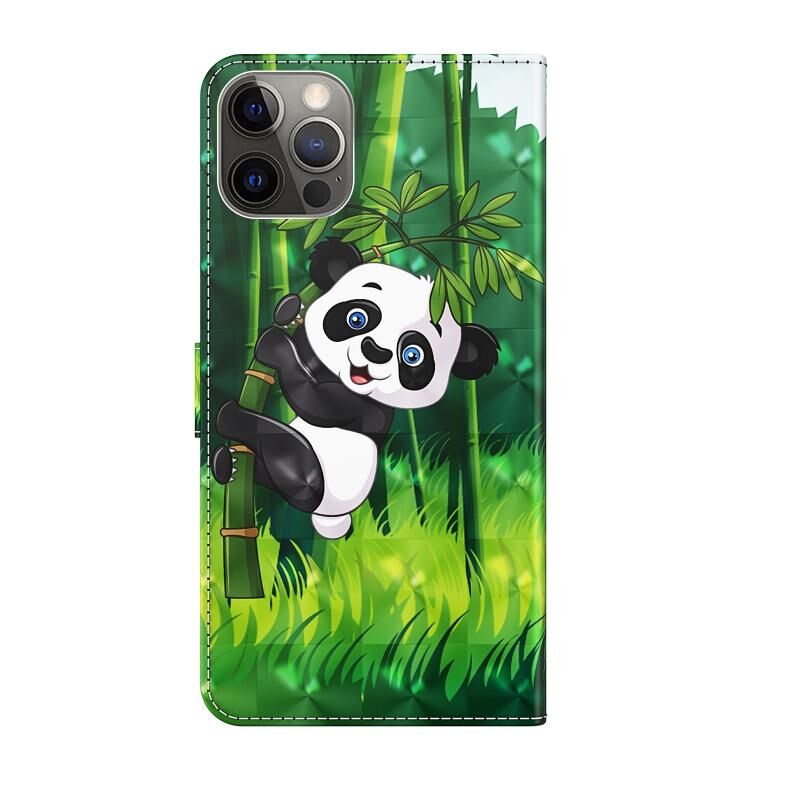 Θήκη τηλεφώνου από δέρμα με σχέδιο 3D ζωγραφικής και πτυσσόμενο μηχανισμό για iPhone 14 Pro (Πάντα, Μπαμπού)