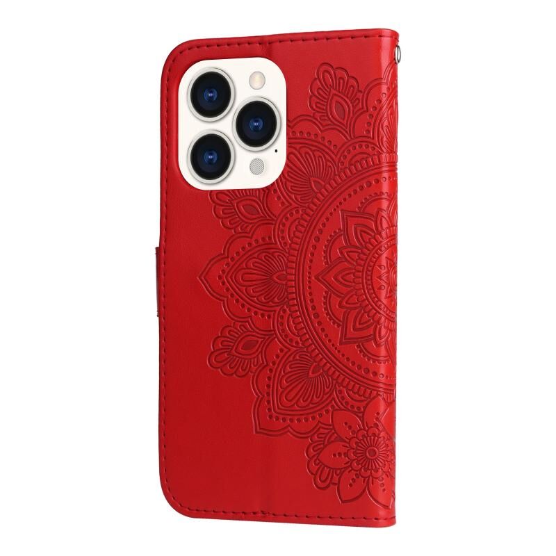 Θήκη δέρματος με ανάγλυφα 7 πέταλα λουλουδιών για iPhone 14 Pro (Χρυσό Ρόδι)
