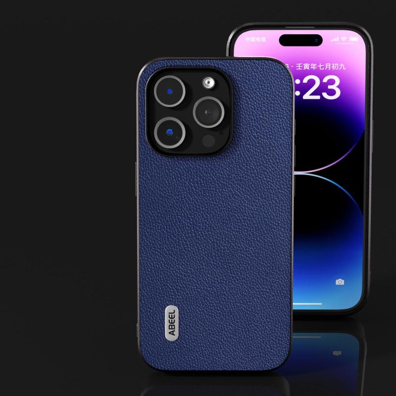For iPhone 14 Pro ABEEL Black Edge Genuine Leather Mino Phone Case(Royal Blue)