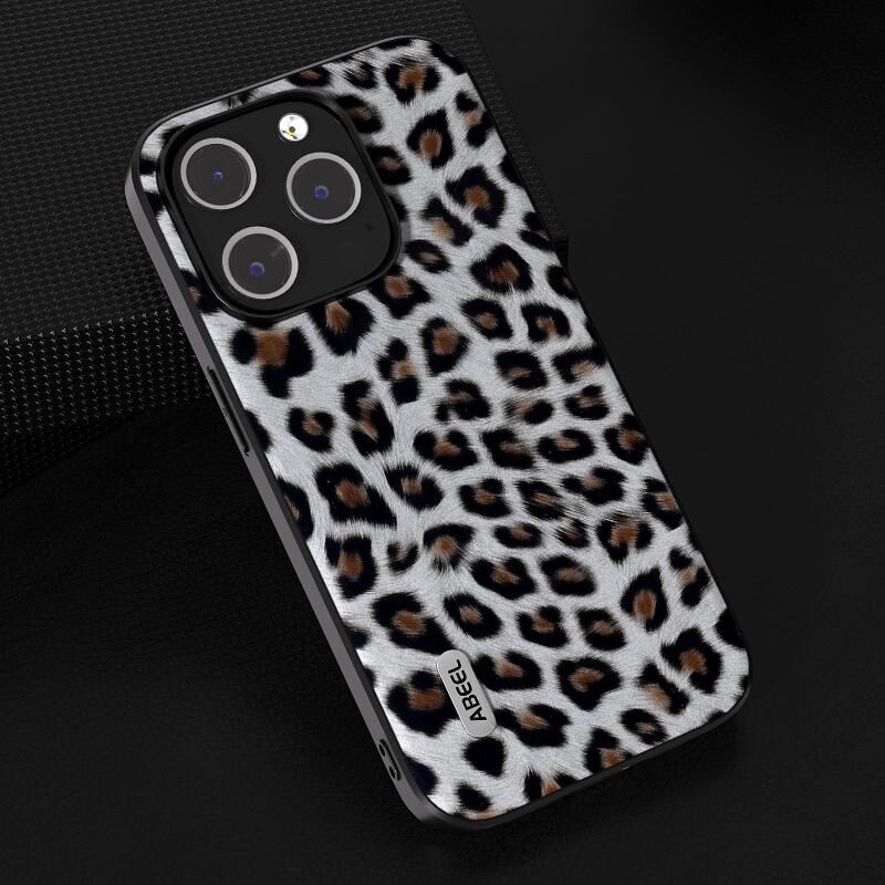 Θήκη τηλεφώνου για iPhone 14 Pro ABEEL Μαύρο Χείλος Λεοπάρδαλη (Ασημί Λεοπάρδαλη)