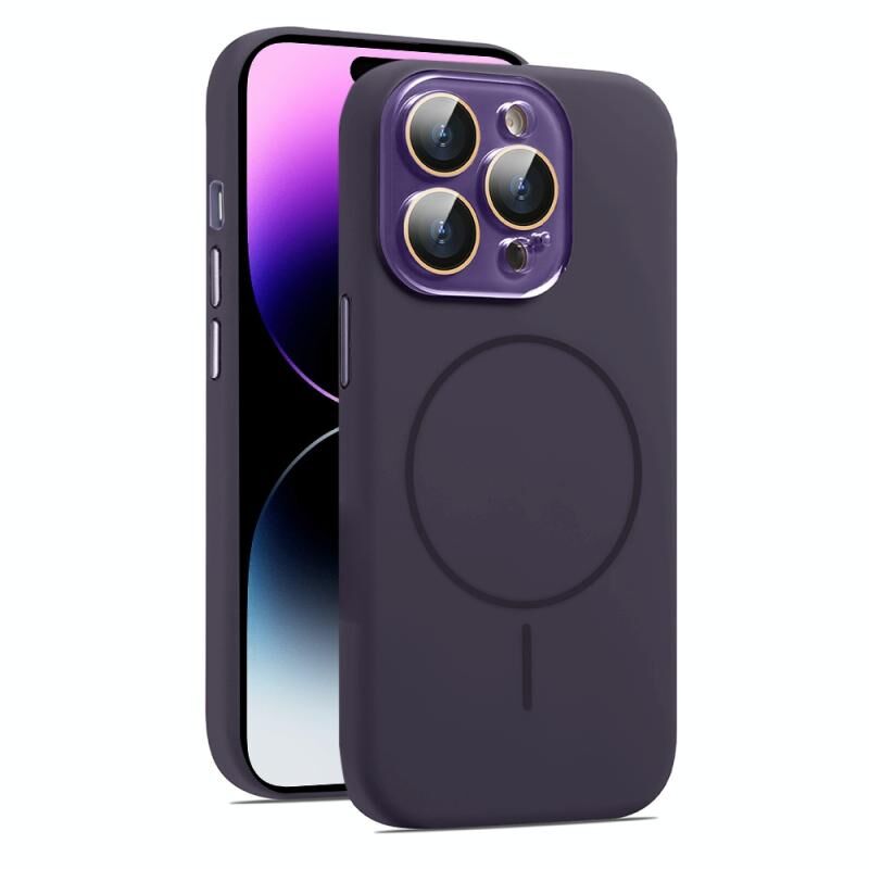Θήκη τηλεφώνου για iPhone 14 Pro AG με λεπτές οπές, υγρή σιλικόνη, MagSafe, μαγνητική (Σκούρο Μωβ)