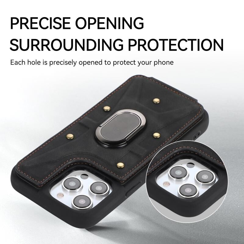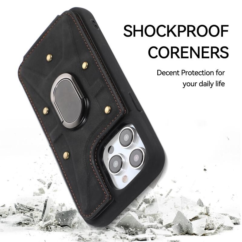 For iPhone 14 Pro Armor Ring Wallet Back Cover Phone Case(Black)