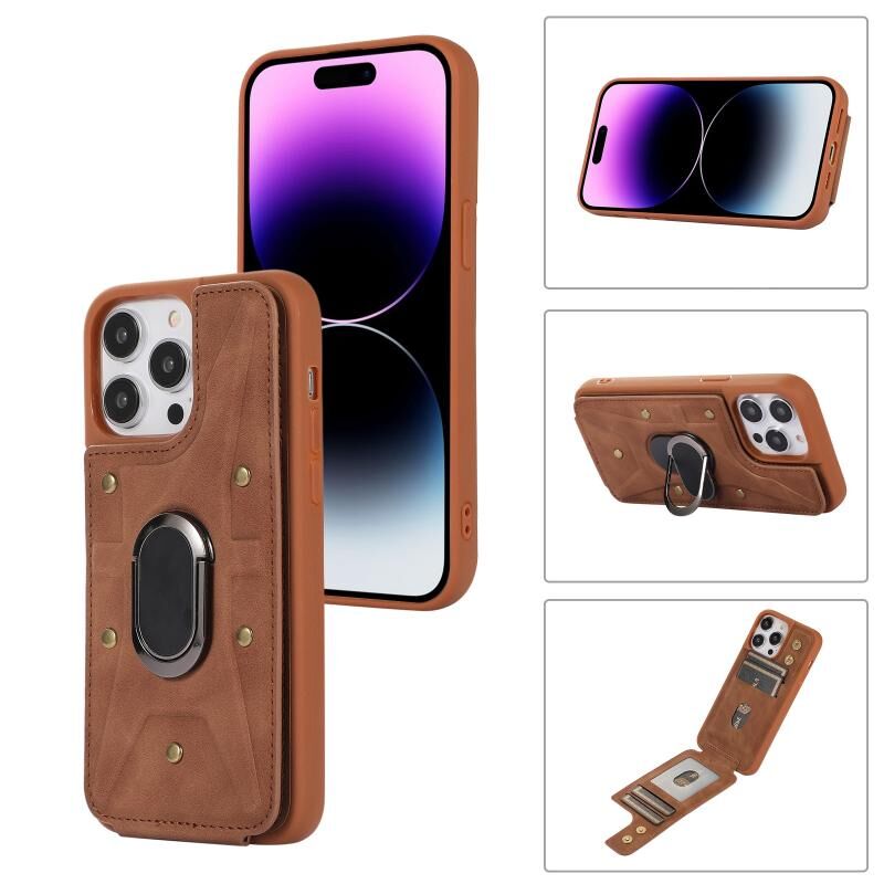 For iPhone 14 Pro Armor Ring Wallet Back Cover Phone Case(Brown)