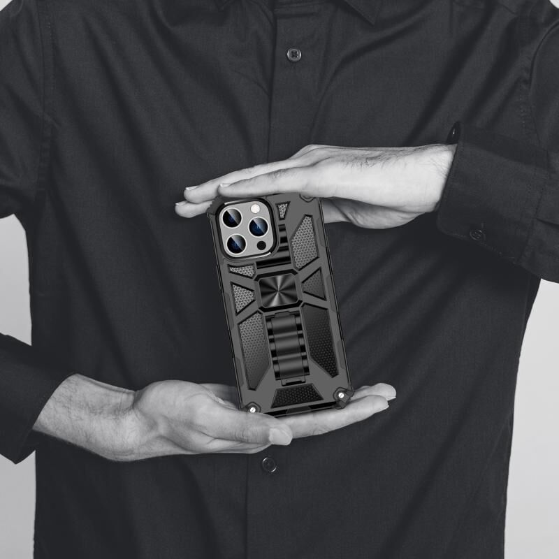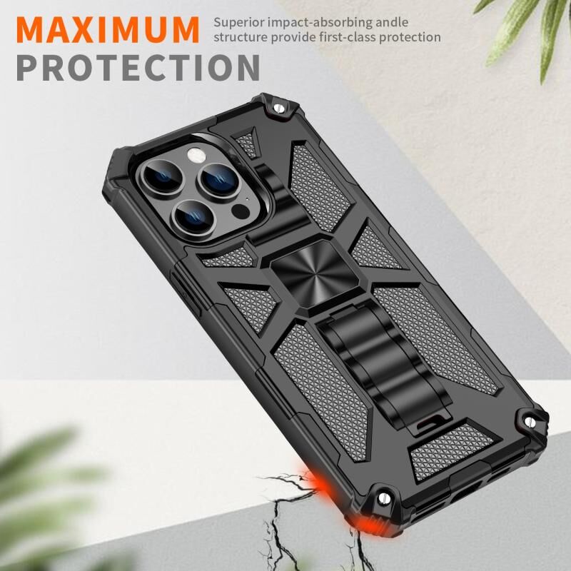 Θήκη προστασίας κινητού τηλεφώνου για iPhone 14 Pro, ανθεκτική σε κρούσεις, από TPU + PC με μαγνητική βάση και στήριξη (Ασημί)