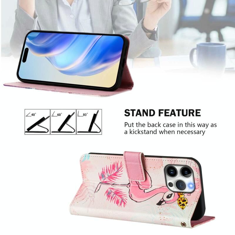 For iPhone 14 pro Art Colored Drawing Pattern Leather Phone Case(Flamingo)