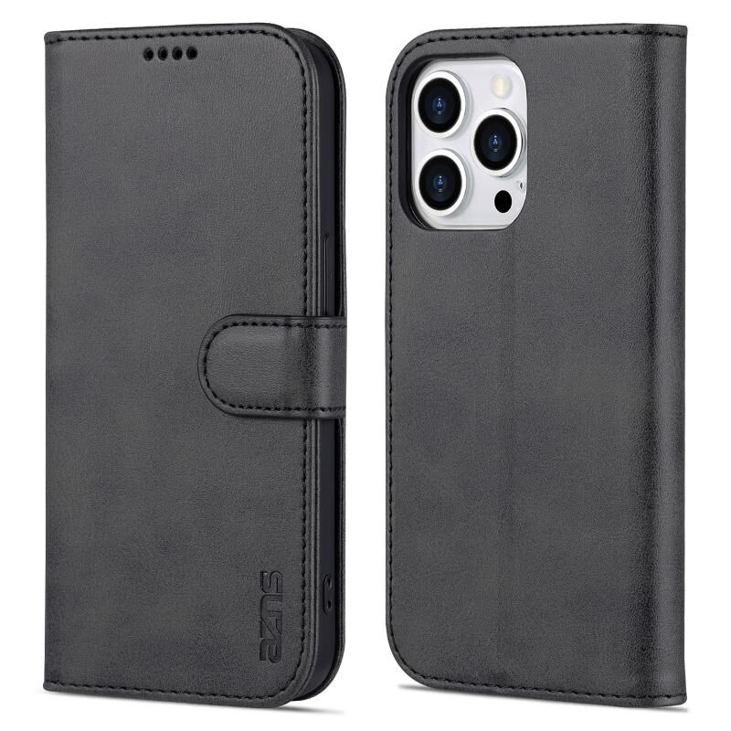 Θήκη δέρματος οριζόντιας αναδίπλωσης για iPhone 14 Pro AZNS με υφή δέρματος μοσχαριού (Καφέ) (AZNS)