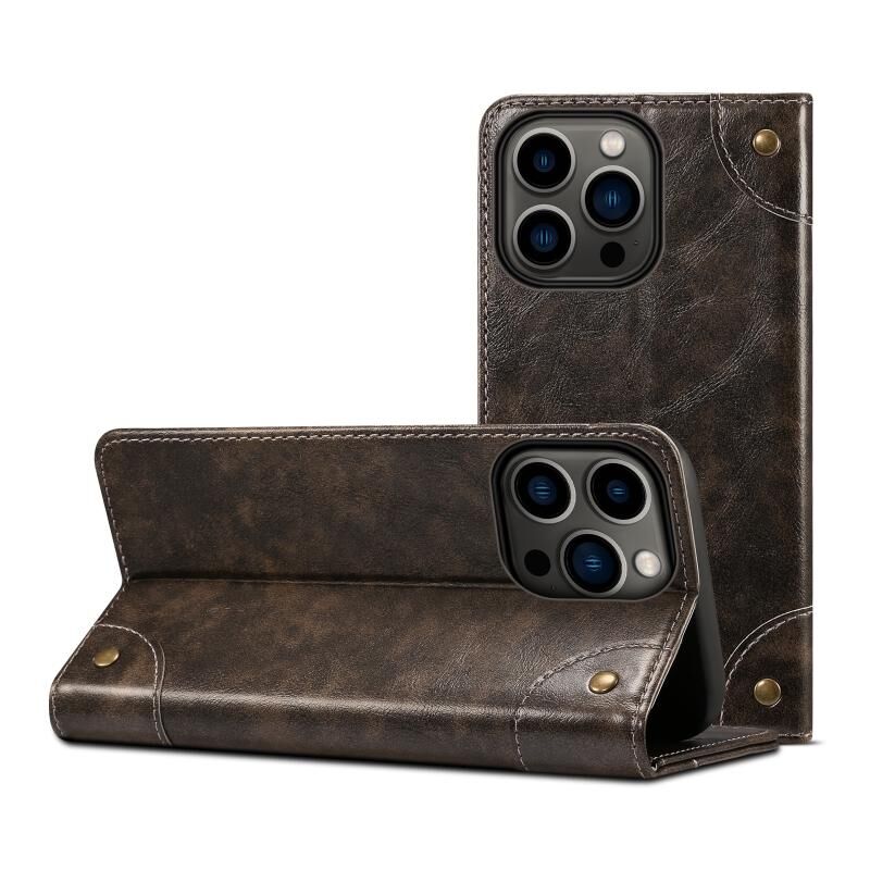 Θήκη τηλεφώνου από δέρμα με απλό, μπαρόκ σχέδιο, τύπου flip, για iPhone 14 Pro (Μαύρο)