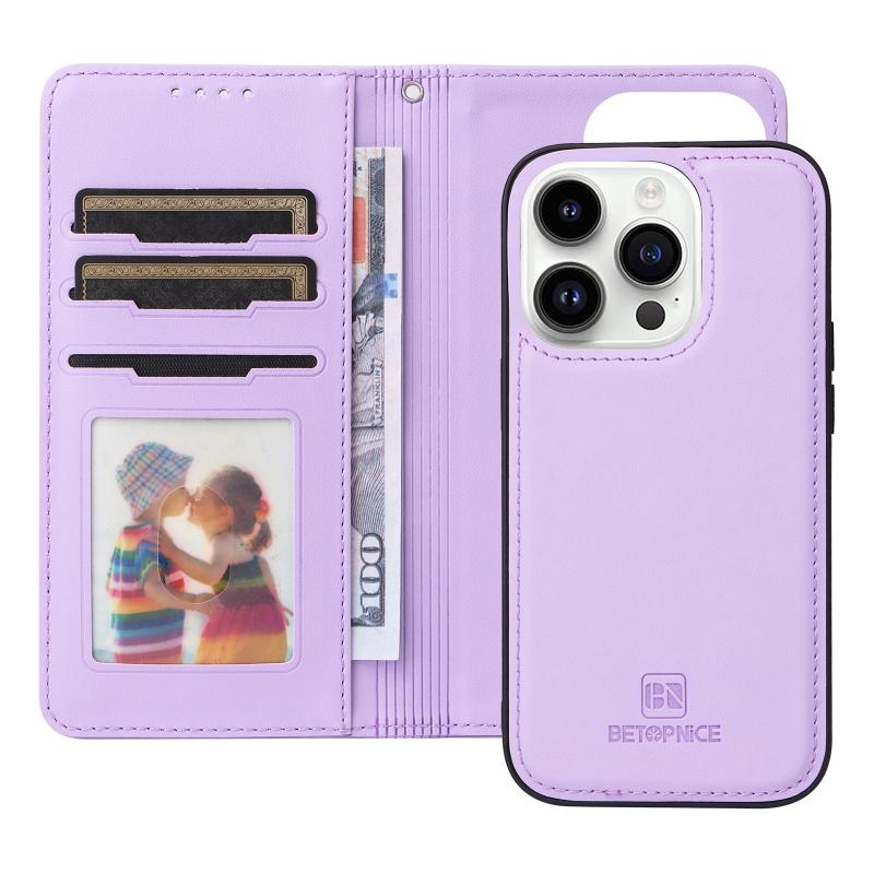 For iPhone 14 Pro BETOPNICE BN-005 2 in 1 Detachable Imitate Genuine Leather Phone Case(Light Purple) (BETOPNICE)