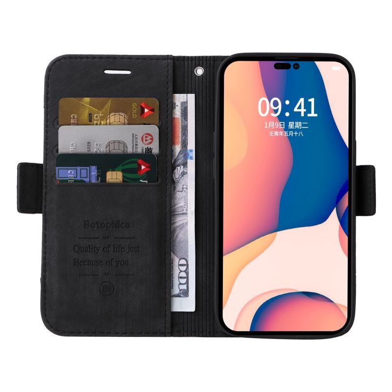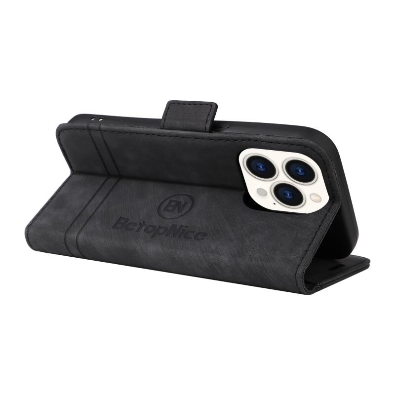 Θήκη τηλεφώνου από δέρμα με διπλή αγκράφα BETOPNICE για iPhone 14 Pro (Μαύρο) (BETOPNICE)