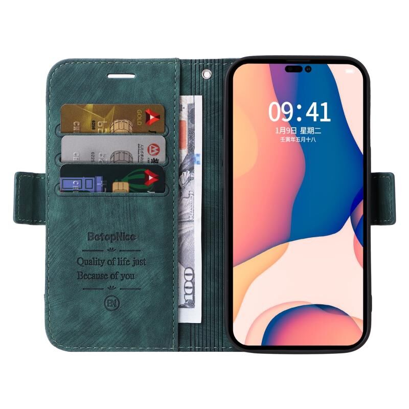 Θήκη τηλεφώνου από δέρμα με διπλή αγκράφα BETOPNICE για iPhone 14 Pro (Μαύρο) (BETOPNICE)