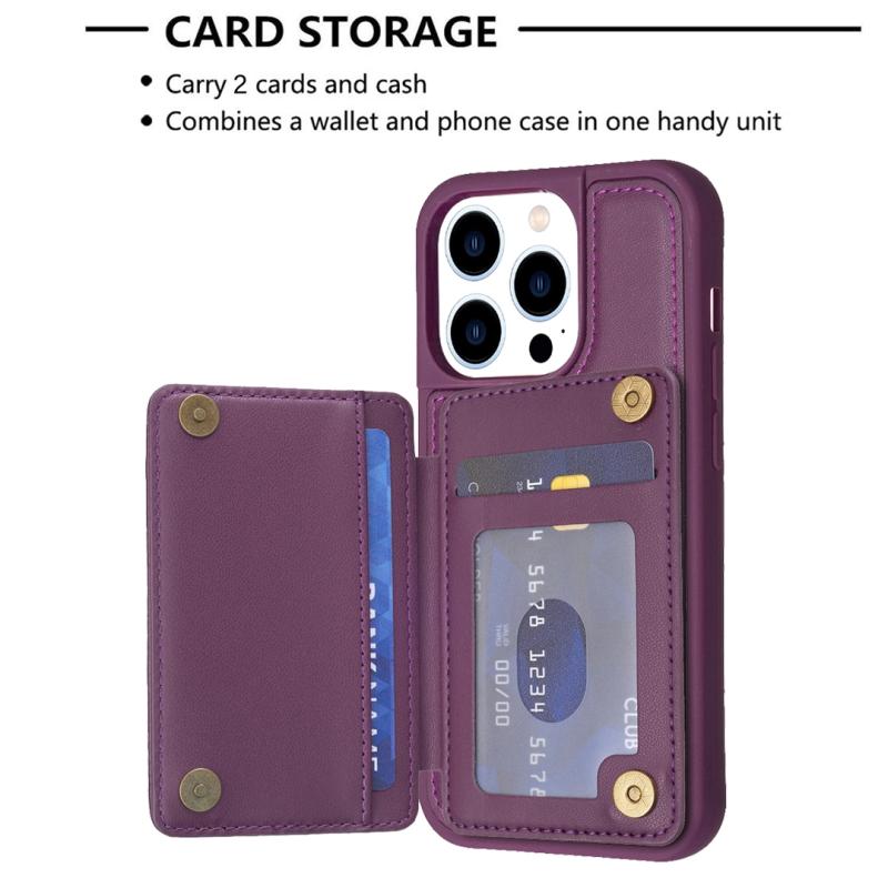 For iPhone 14 Pro BF25 Square Plaid Card Bag Holder Phone Case(Dark Purple)
