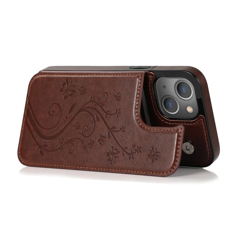 Θήκη για iPhone 14 Pro με Πεταλούδες, Λουλούδια και Διπλή Αγκράφα (Μαύρο)