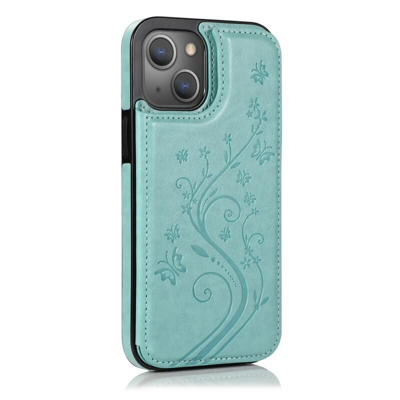 Θήκη για iPhone 14 Pro με Πεταλούδες, Λουλούδια και Διπλή Αγκράφα (Μαύρο)