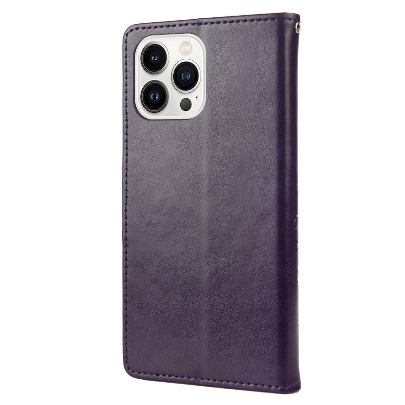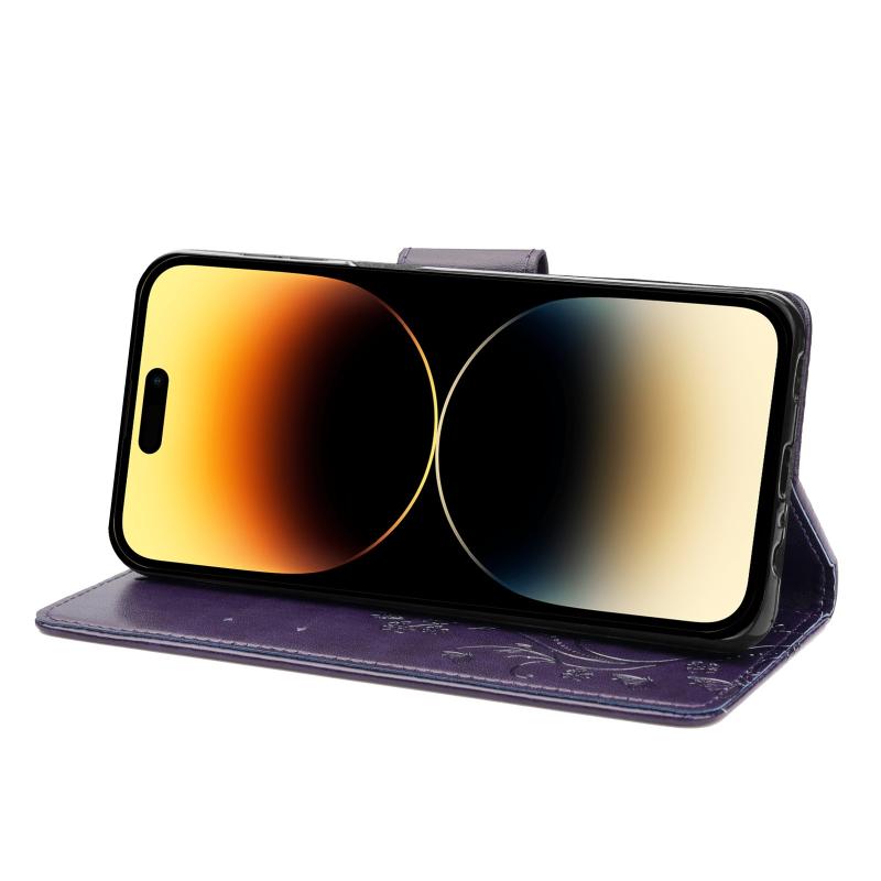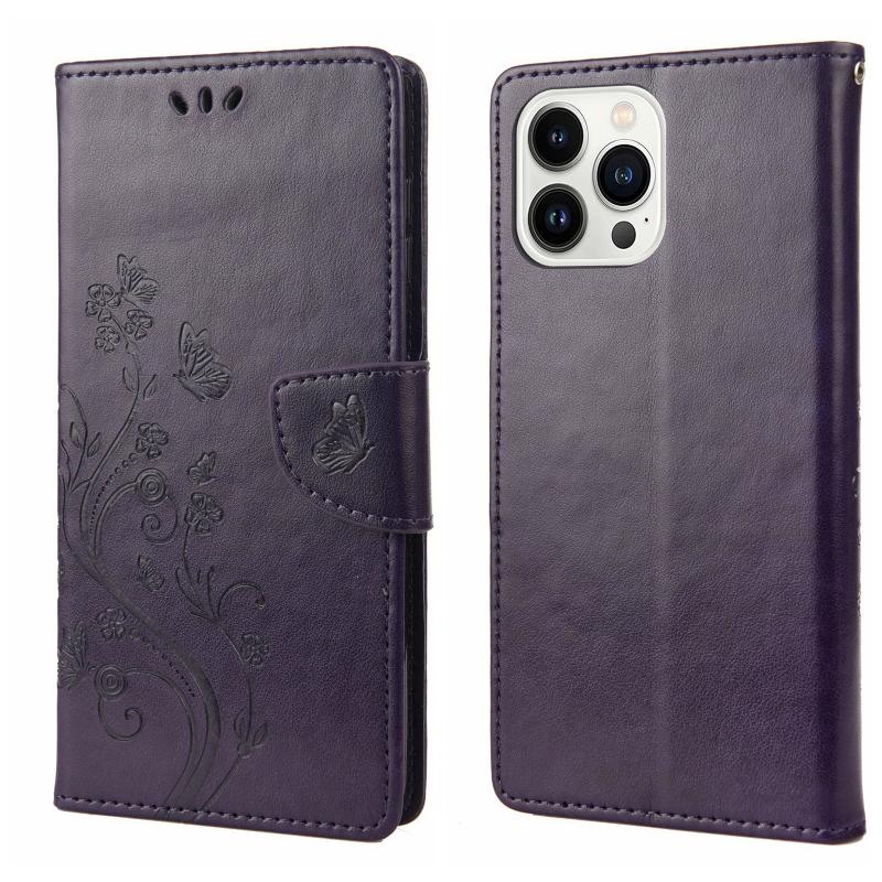Θήκη τηλεφώνου από δέρμα με σχέδιο πεταλούδας και λουλουδιών για iPhone 14 Pro (Πράσινο)