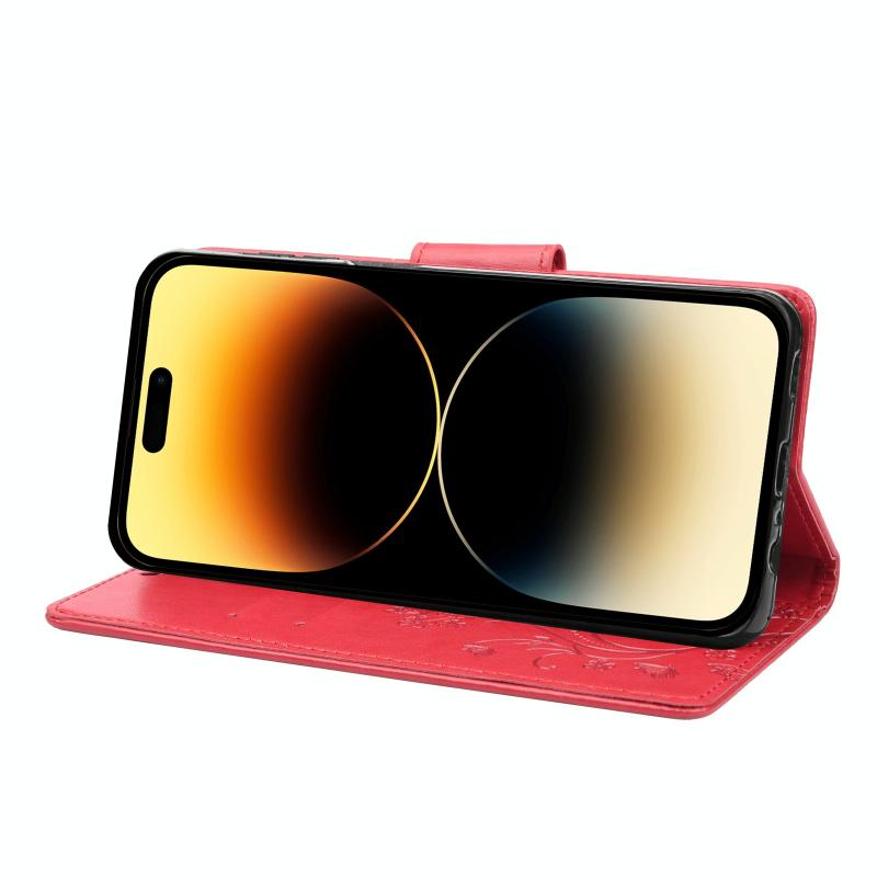 Θήκη τηλεφώνου από δέρμα με σχέδιο πεταλούδας και λουλουδιών για iPhone 14 Pro (Πράσινο)