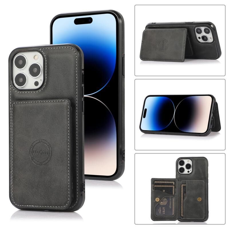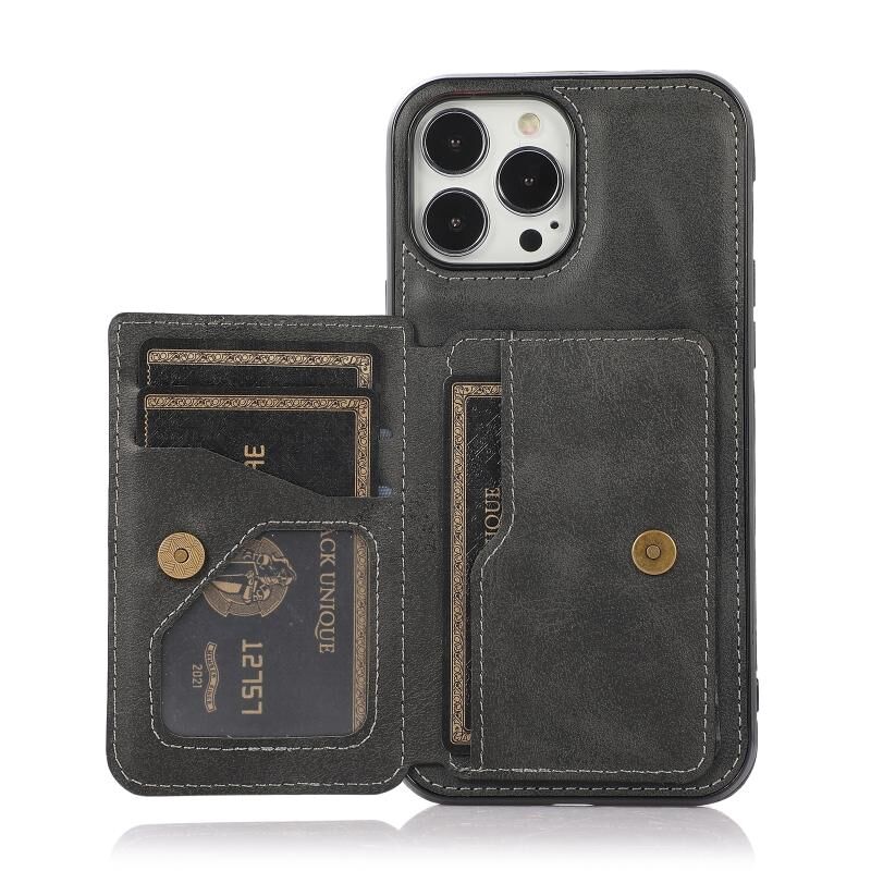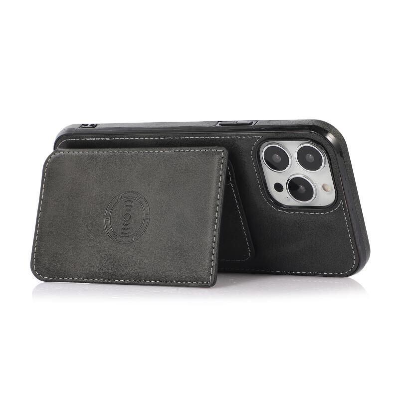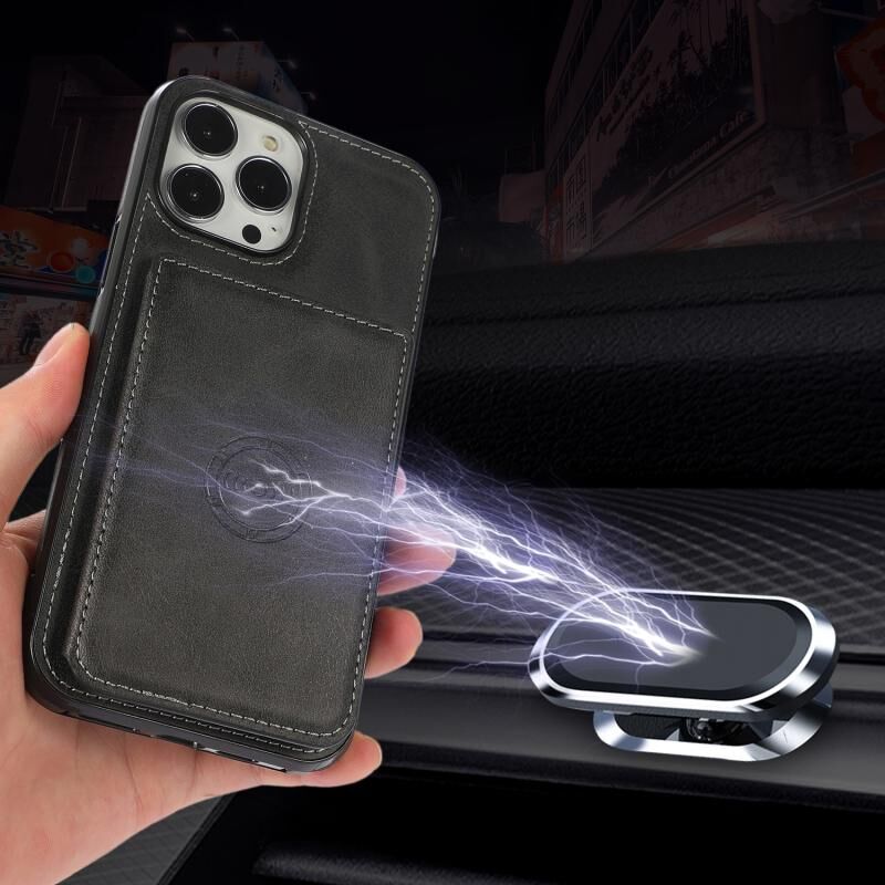 Θήκη για iPhone 14 Pro με μαγνητική θήκη καρτών από δέρμα μοσχαριού (Κόκκινο)