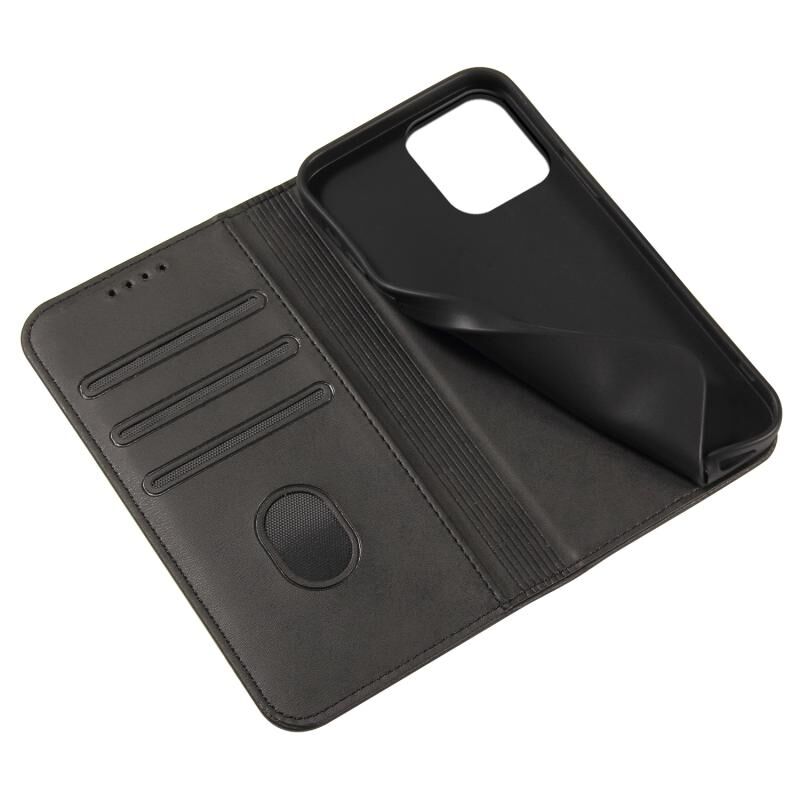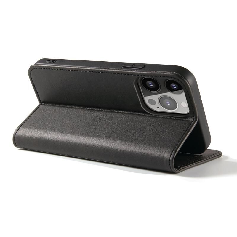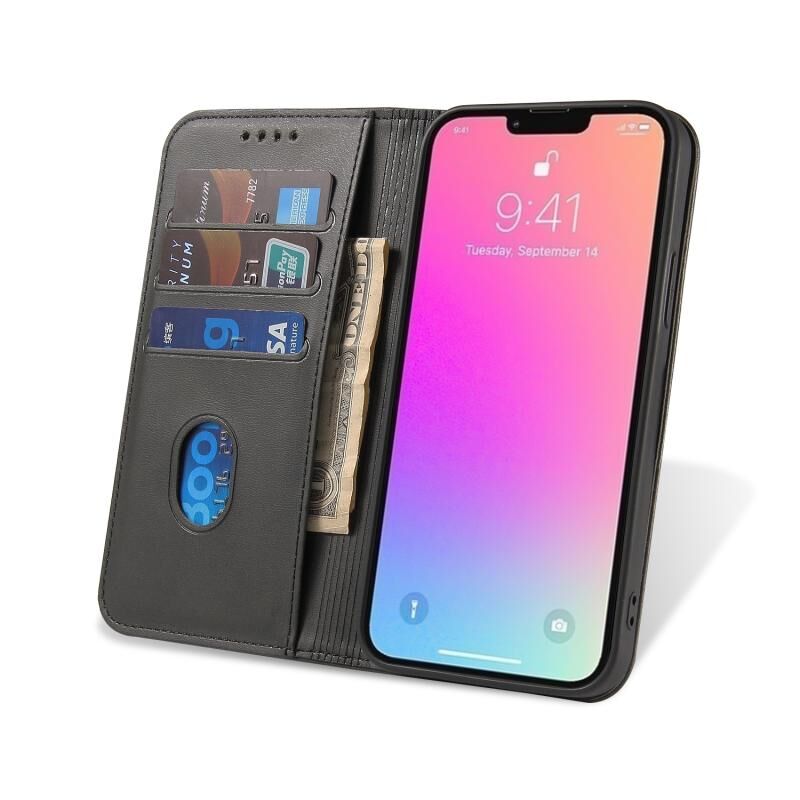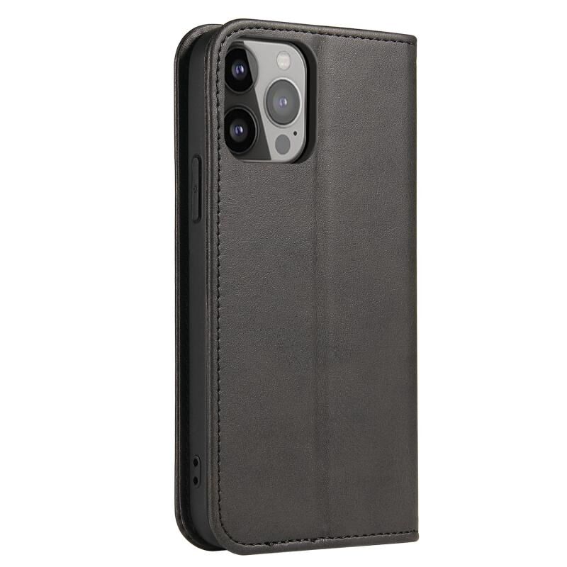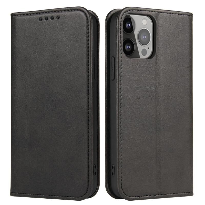 Θήκη τηλεφώνου από δέρμα με μαγνητικό κλείσιμο και υφή μοσχαριού για iPhone 14 Pro (Μαύρο)