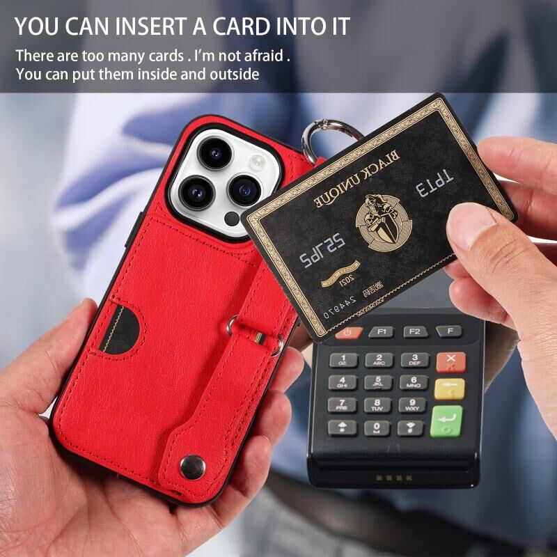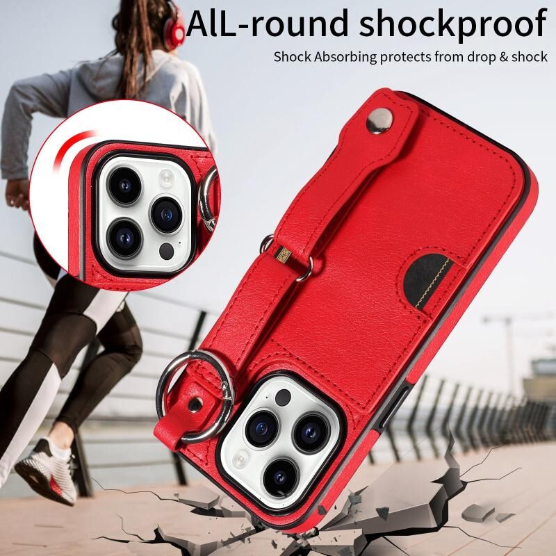 Θήκη τηλεφώνου για iPhone 14 Pro με υφή μοσχαρίσιου δέρματος, θήκη καρπού με υποδοχή κάρτας και δακτύλιο (Καφέ)