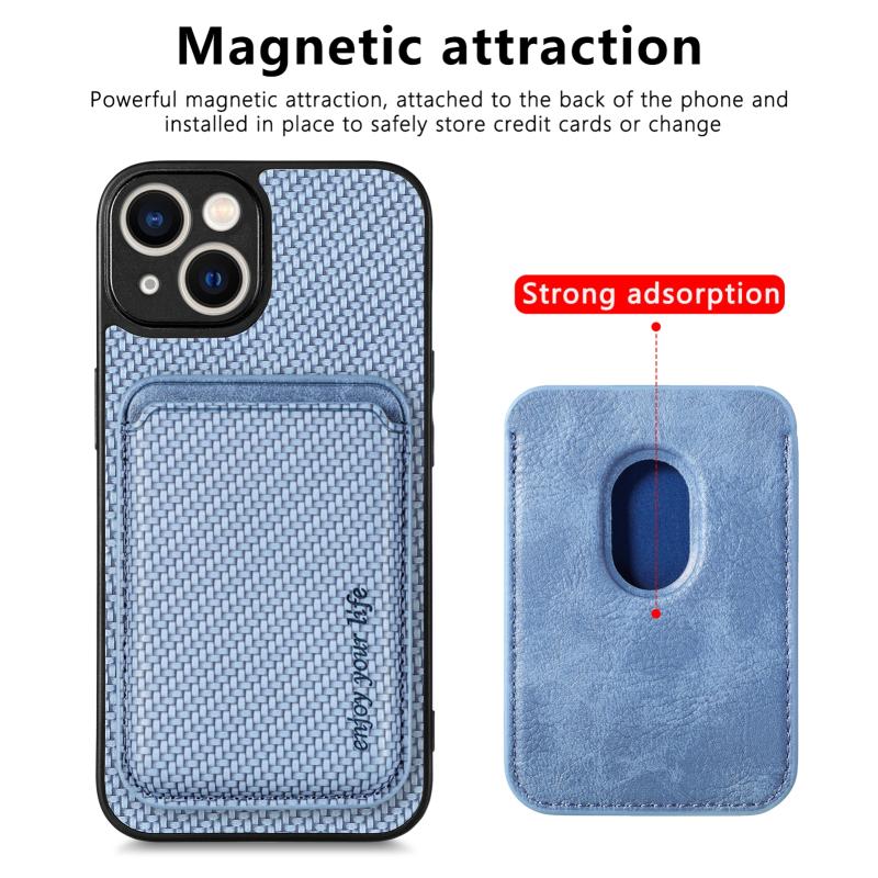 For iPhone 14 Pro Carbon Fiber Leather Card Magsafe Magnetic Phone Case(Blue)