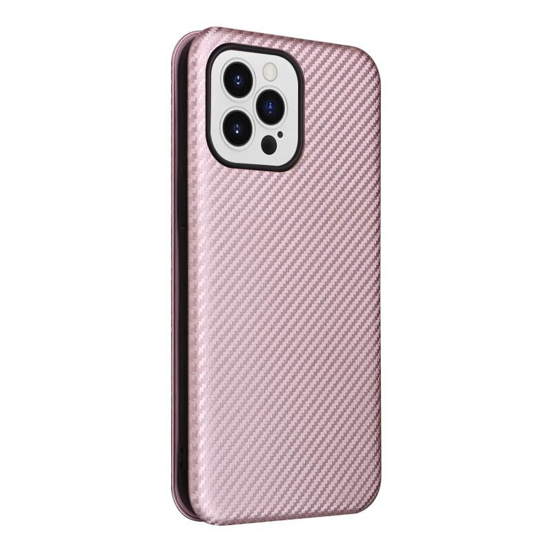 For iPhone 14 Pro Carbon Fiber Texture Flip Leather Phone Case (Pink)