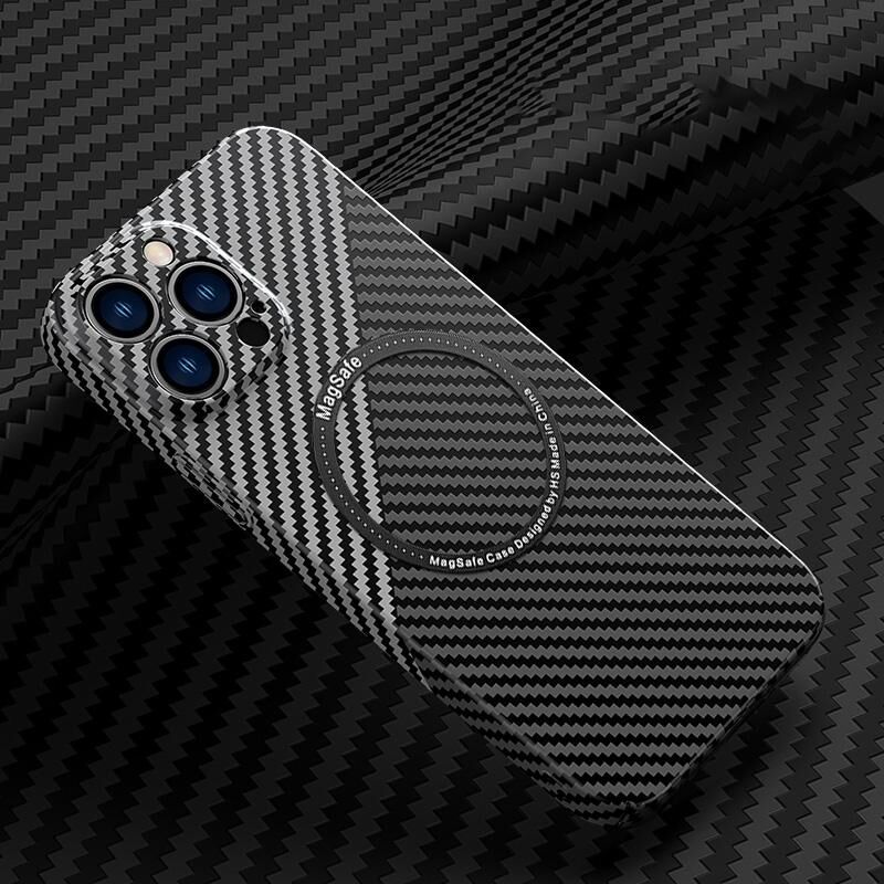 For iPhone 14 Pro Carbon Fiber Texture MagSafe Magnetic Phone Case(Black Silver)