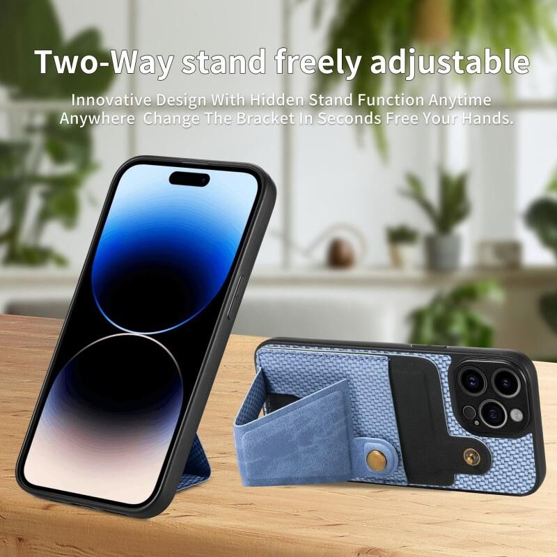 For iPhone 14 Pro Carbon Fiber Wallet Flip Card K-shaped Holder Phone Case(Blue)