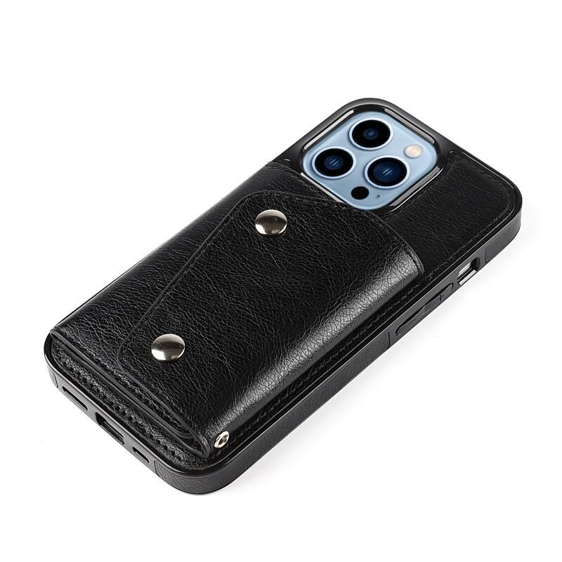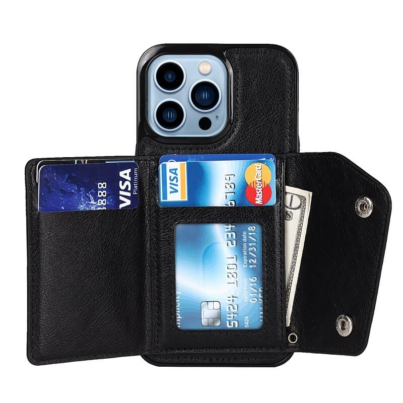 Θήκη τηλεφώνου για iPhone 14 Pro με θήκες καρτών PU + TPU, δερμάτινη (Μαύρο)