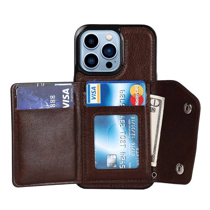 Θήκη τηλεφώνου για iPhone 14 Pro με θήκες καρτών PU + TPU, δερμάτινη (Μαύρο)