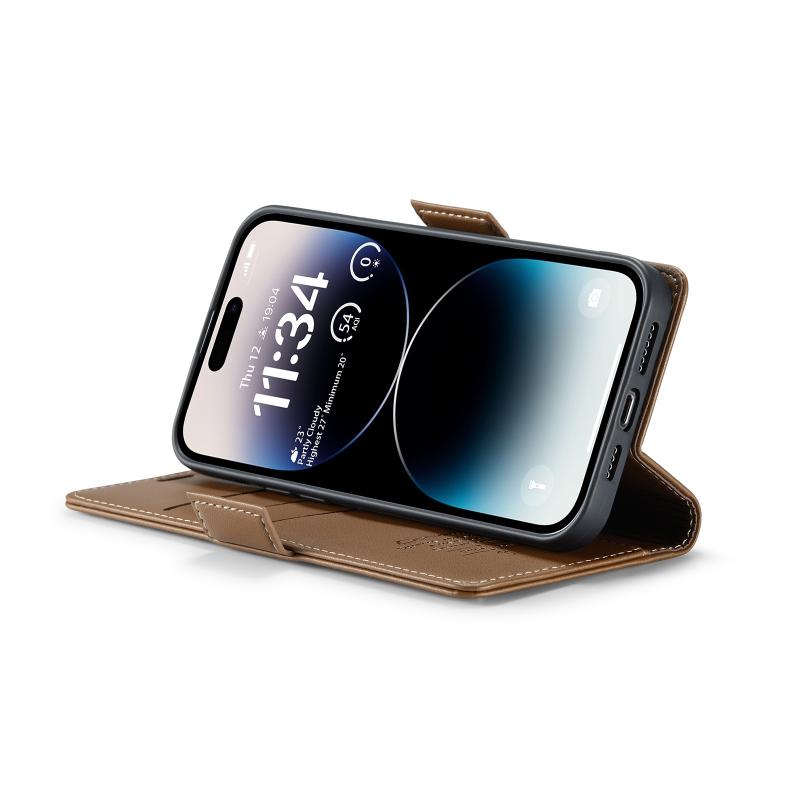 For iPhone 14 Pro CaseMe 023 Butterfly Buckle Litchi Texture RFID Anti-theft Leather Phone Case(Brown) (CaseMe)