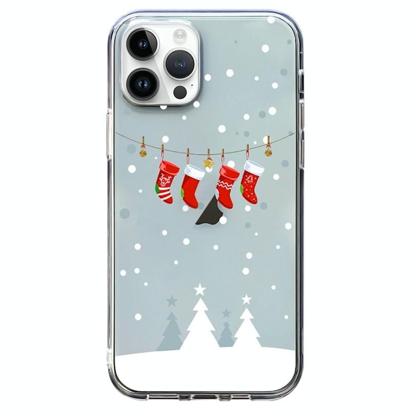 Θήκη τηλεφώνου για iPhone 14 Pro, διαφανής, μαλακή σιλικόνη TPU με χριστουγεννιάτικο σχέδιο (Χριστουγεννιάτικη Κάλτσα).