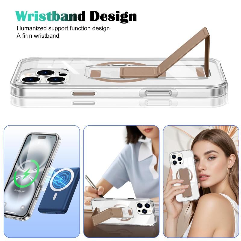 For iPhone 14 Pro Clear Wristband Holder MagSafe Phone Case(Brown)