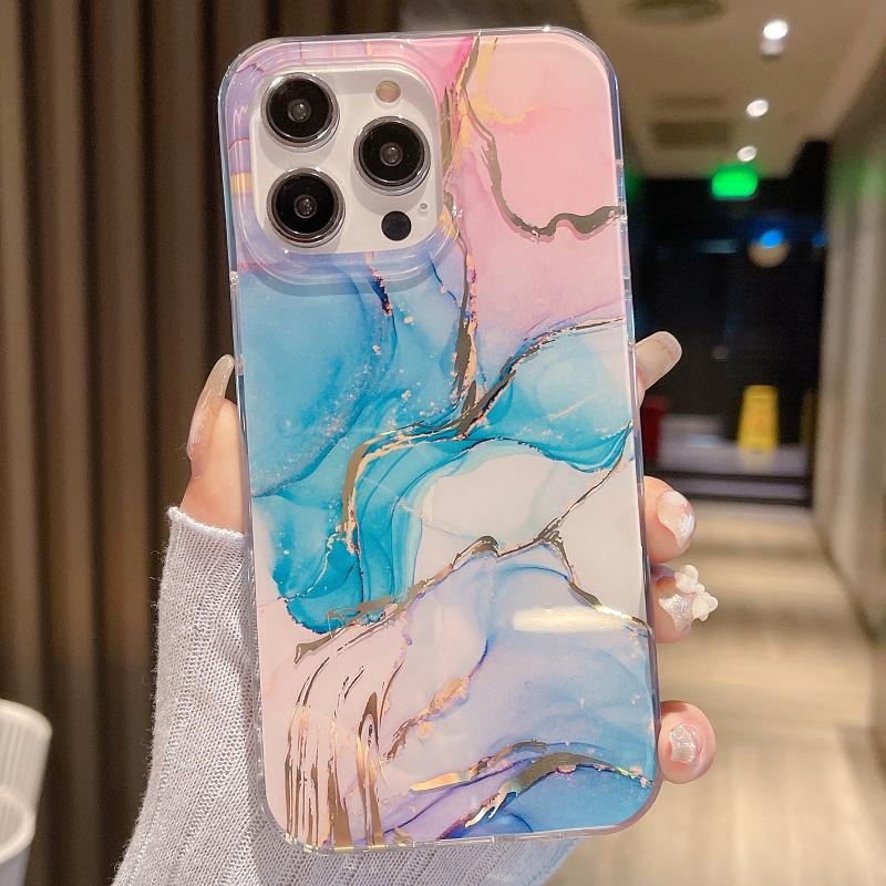Θήκη τηλεφώνου με γυαλιστερό μαρμάρινο σχέδιο για iPhone 14 Pro (Ροζ Χρυσό)