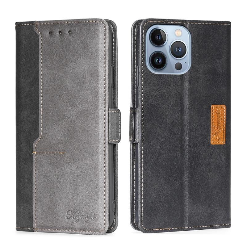 Θήκη τηλεφώνου από δέρμα με πλαϊνή αγκράφα σε αντίθετα χρώματα για iPhone 14 Pro (Μωβ + Κόκκινο του Ρόδου)