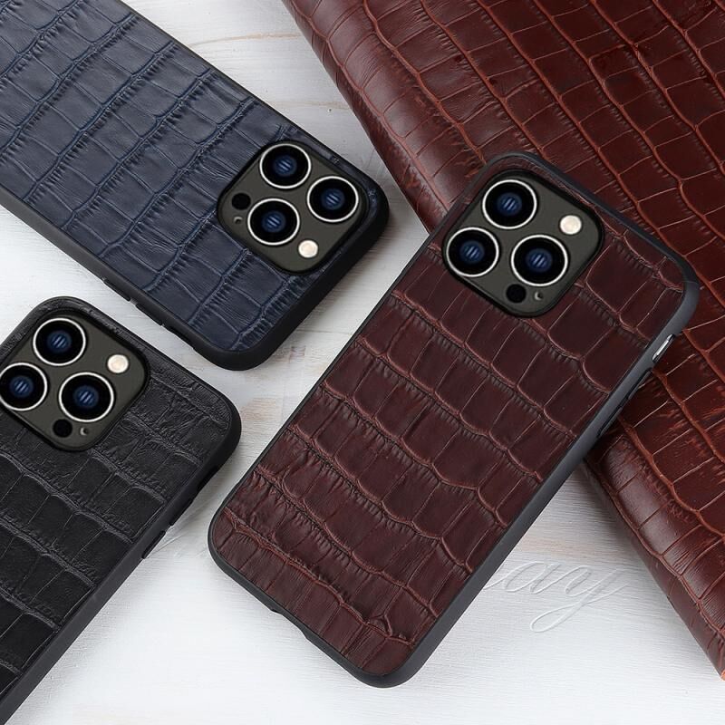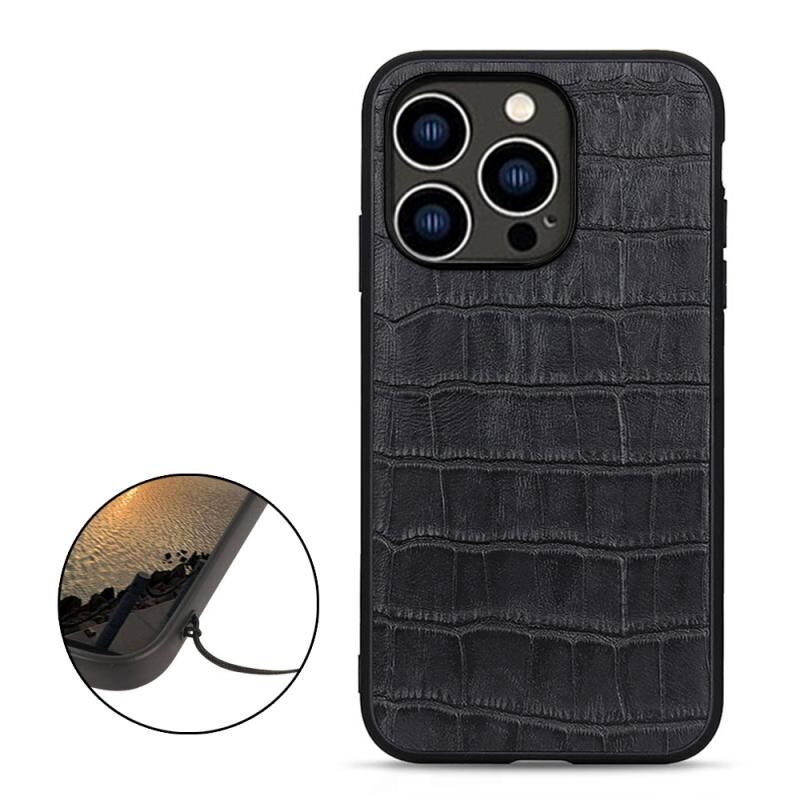 Θήκη τηλεφώνου από γνήσιο δέρμα με υφή κροκόδειλου για iPhone 14 Pro (Μαύρο)