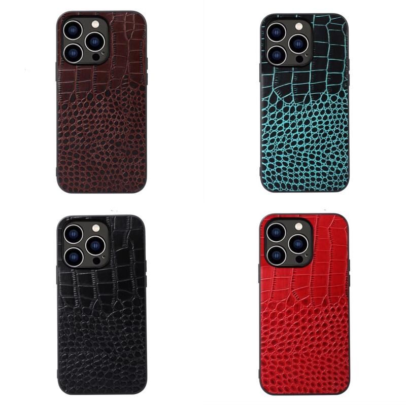 Θήκη για iPhone 14 Pro από Δέρμα Μοσχαριού με Επικάλυψη Κροκόδειλου (Καφέ)