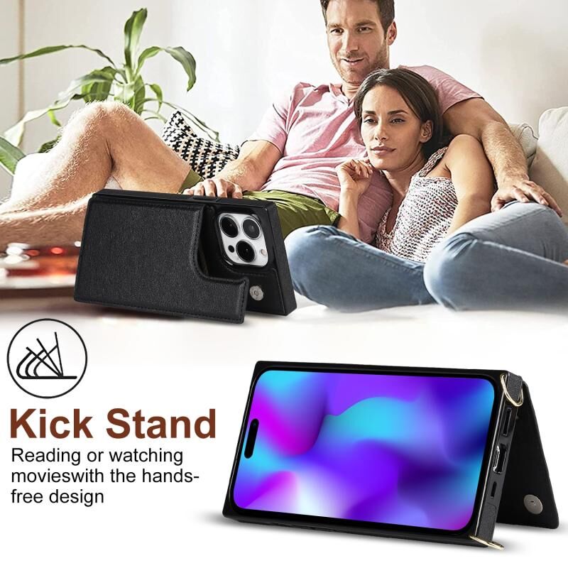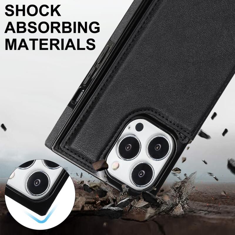 Θήκη κινητού τηλεφώνου τύπου πορτοφολιού με κάρτες, τετράγωνου σχήματος, με διπλή αγκράφα για iPhone 14 Pro (Μαύρο)