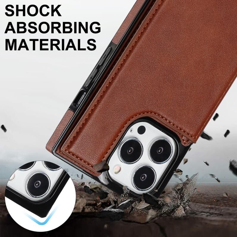 Θήκη κινητού τηλεφώνου τύπου πορτοφολιού με κάρτες, τετράγωνου σχήματος, με διπλή αγκράφα για iPhone 14 Pro (Μαύρο)