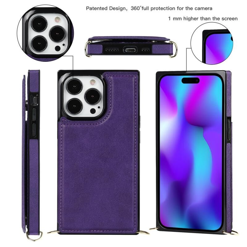 Θήκη κινητού τηλεφώνου τύπου πορτοφολιού με κάρτες, τετράγωνου σχήματος, με διπλή αγκράφα για iPhone 14 Pro (Μαύρο)