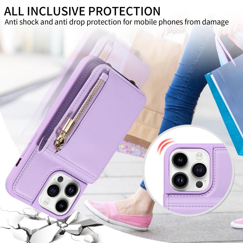 For iPhone 14 Pro Crossbody Lanyard Zipper Wallet Leather Phone Case(Purple)