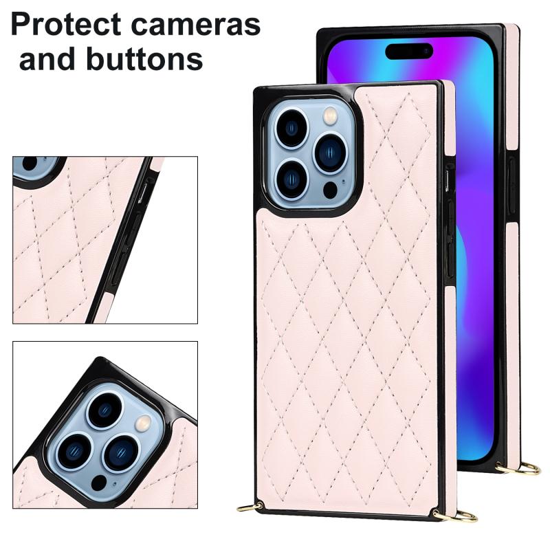 For iPhone 14 Pro Crossbody Rhombic Microfiber Leather Phone Case(Pink)