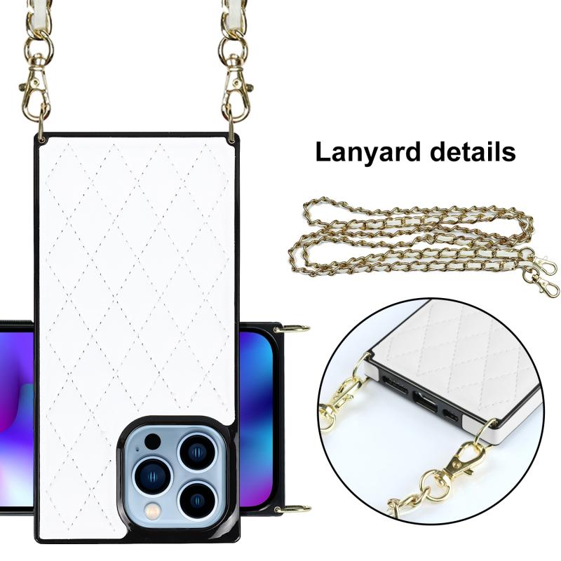 For iPhone 14 Pro Crossbody Rhombic Microfiber Leather Phone Case(White)