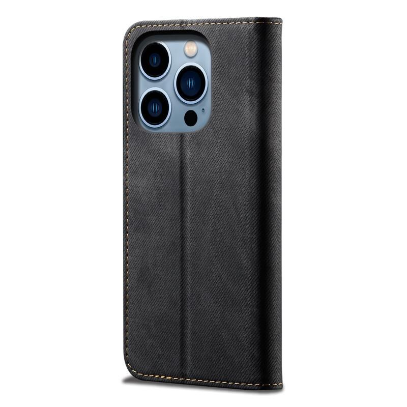 Θήκη τηλεφώνου από δέρμα για iPhone 14 Pro με υφή τζιν, casual στυλ (Μαύρο)